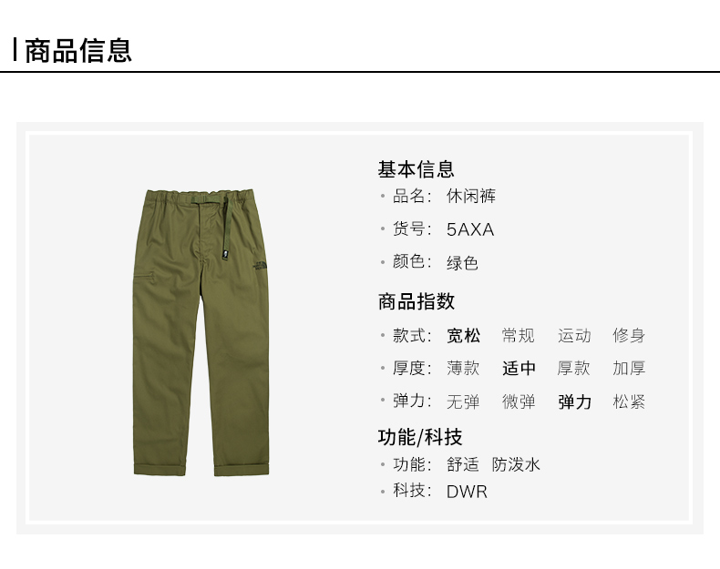 下MTheNorthFaceUE北面CITY PANT男宽松休闲长裤|5AXA
