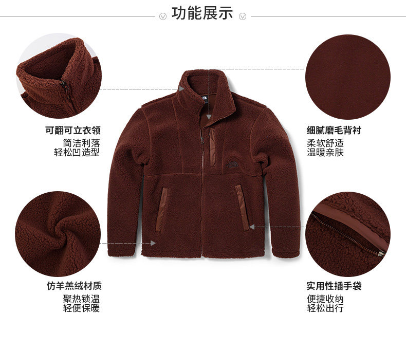TheNorthFace北面仿羊羔绒男女款户外舒适保暖外套抓绒衣|7QT1