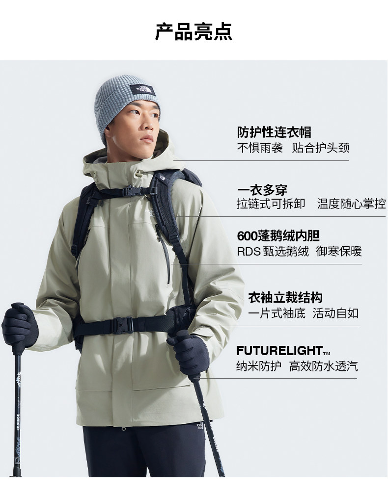 北面男Stormpeak鹅绒羽绒三合一冲锋衣户外防水TheNorthFace|89ZM